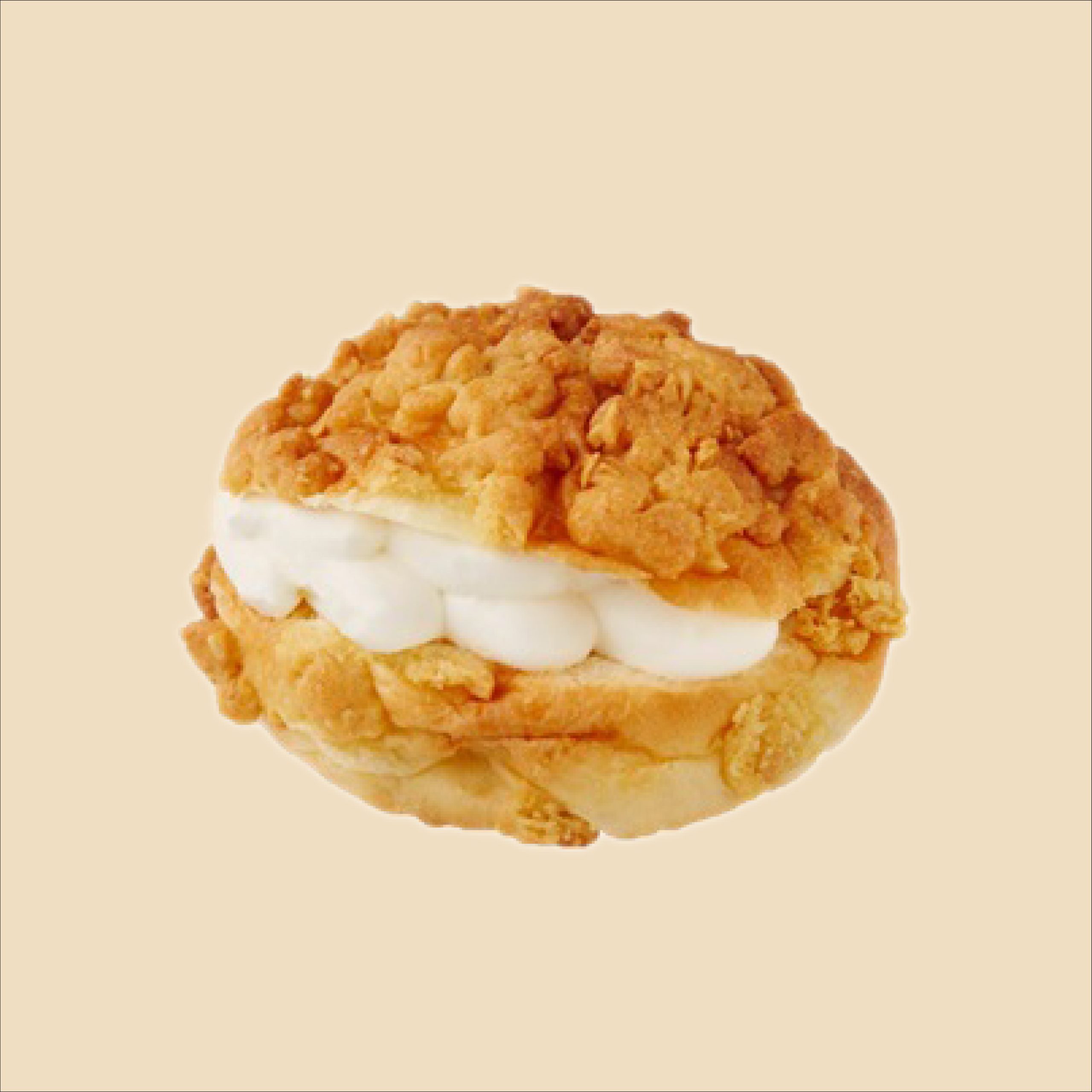 Classic Korean bread filled with premium milk cream topped with extra crunchy peanut crumble topping.