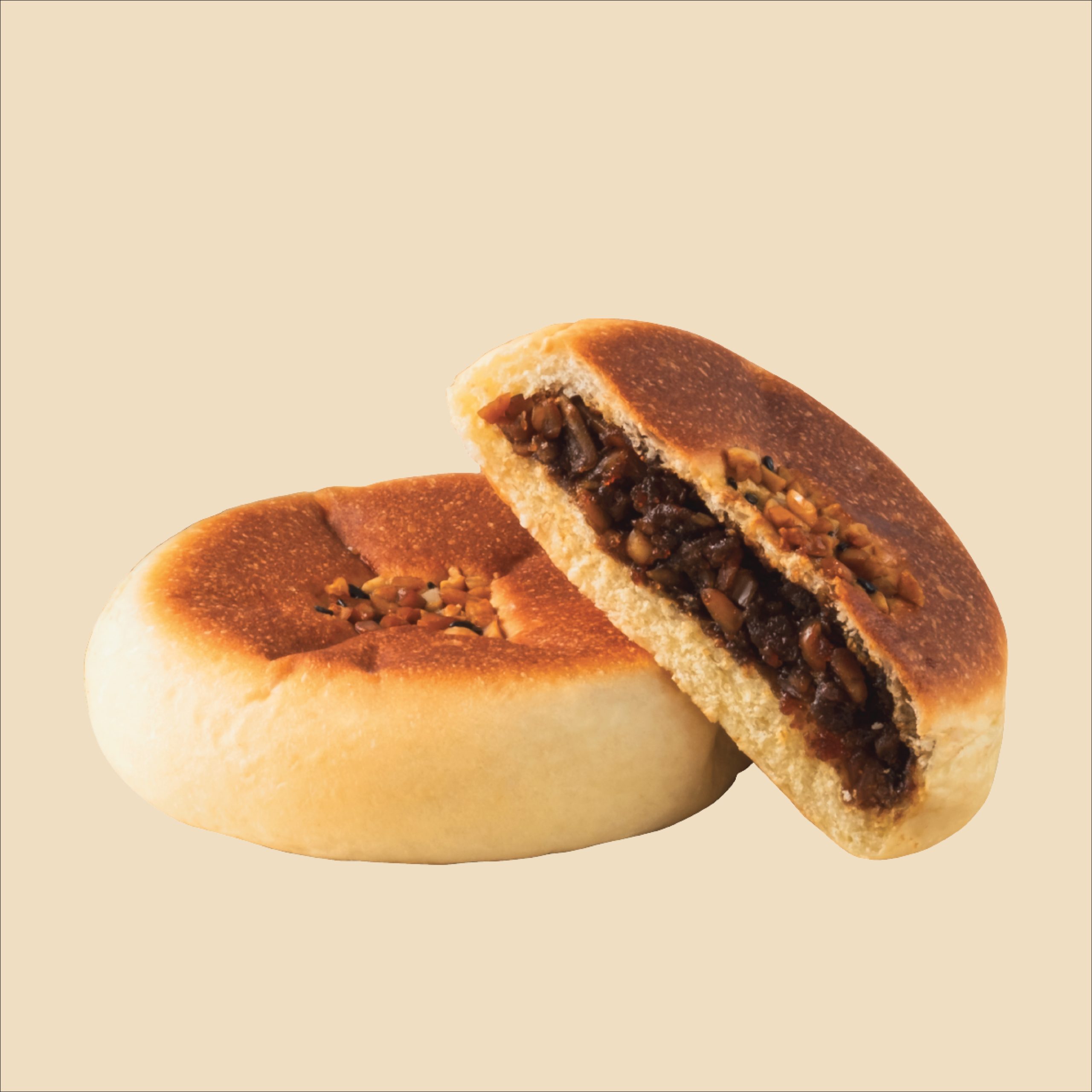 Soft Korean-style bread filled with a sweet filling of brown sugar, honey, and various nuts and seeds.